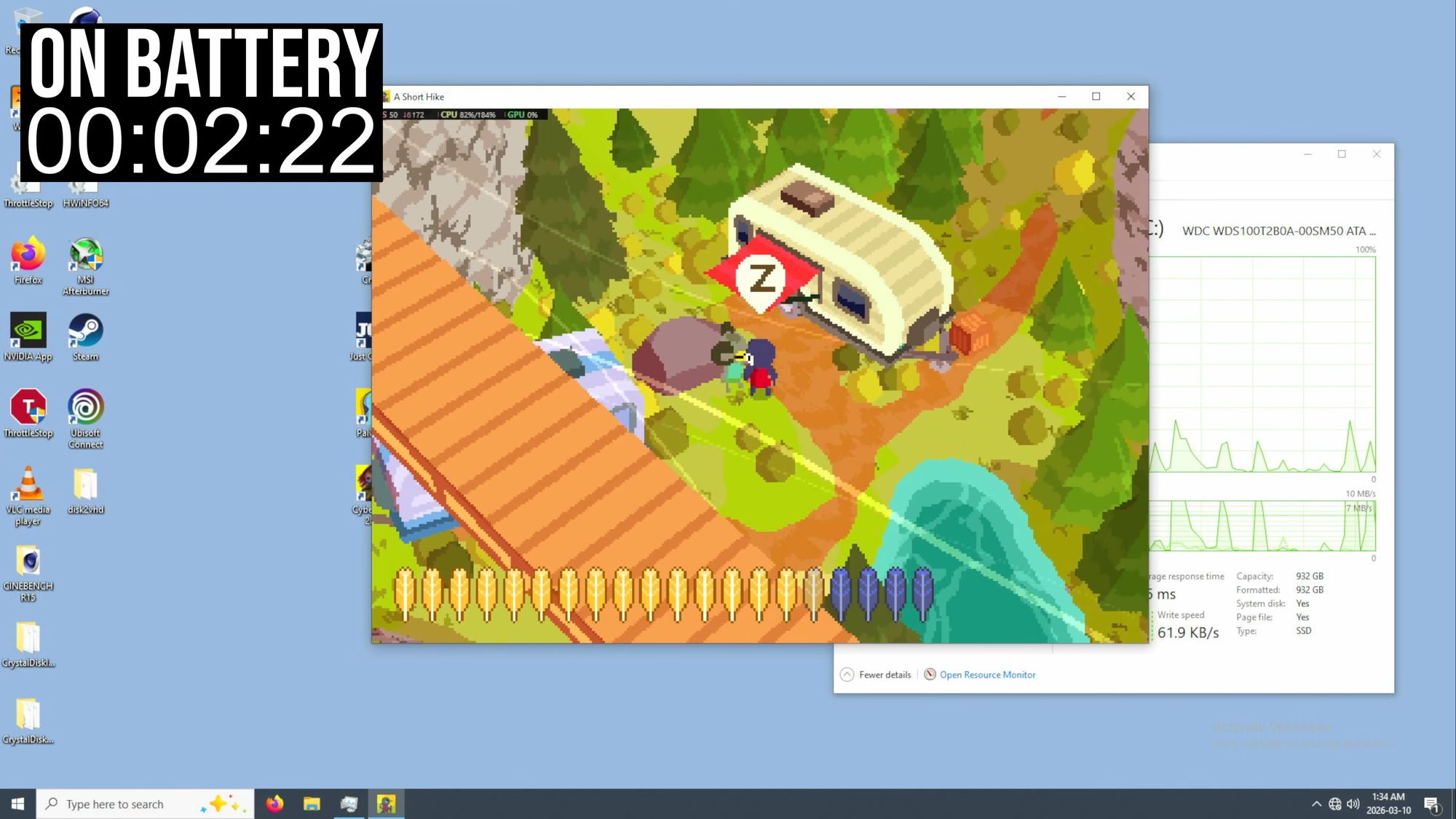 - Bermain game ringan seperti A Short Hike dan Minecraft