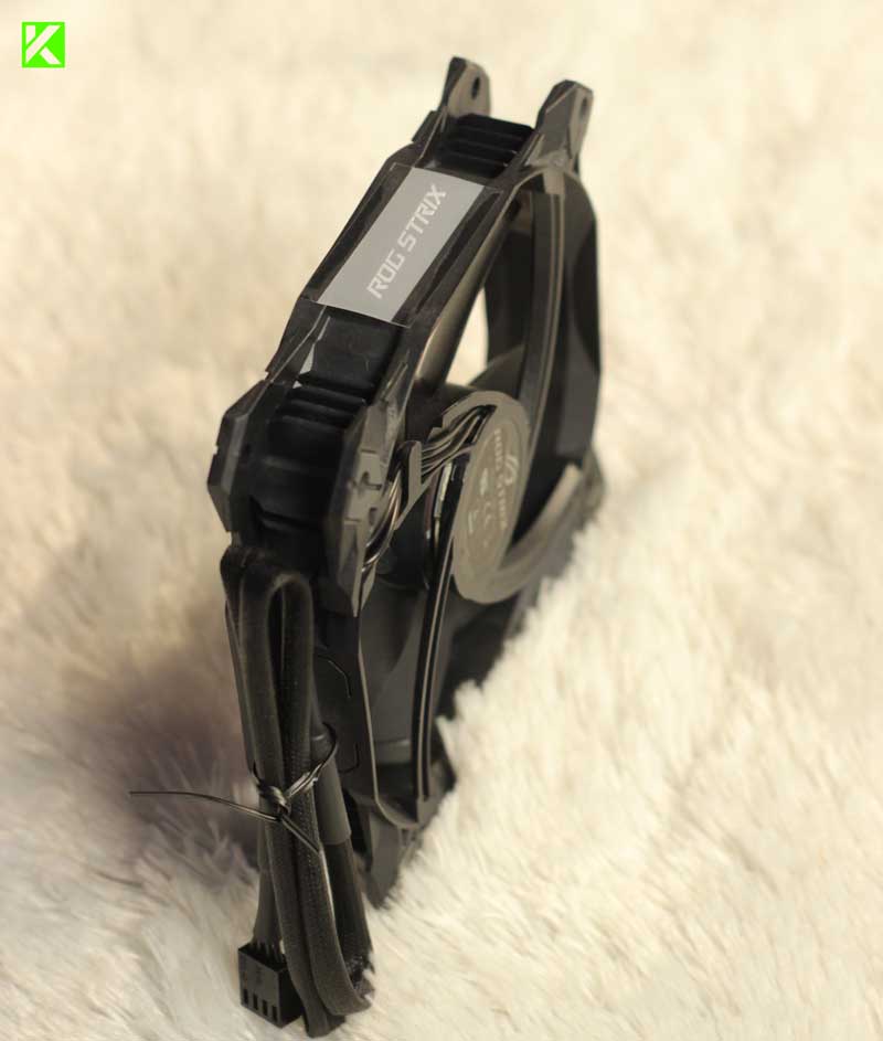 Kipas ini hadir dalam desain warna hitam yang elegan. Ini adalah estetika yang benar-benar sesuai dengan merek ROG yang dikenal dengan tampilan gaming yang premium.